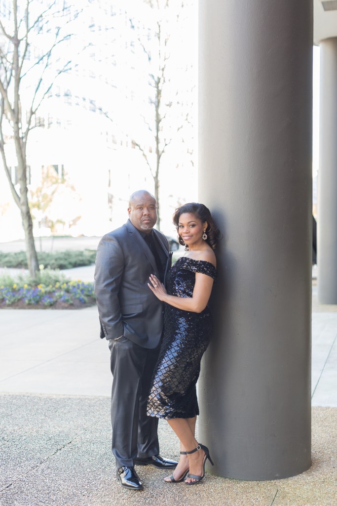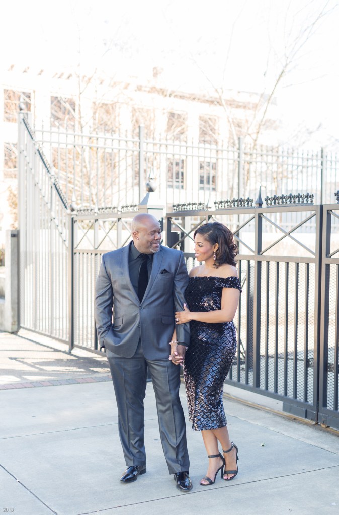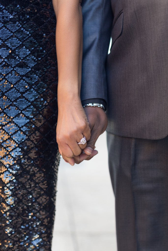 Rasheda & Daniel started the first part of their engagement session on Capitol Street in formal attire. I was in love with Rasheda’s beautiful black sequined dress and I also loved how Daniel’s black velvet tie added the perfect touch to his entire suit. I had the best time photographing Rasheda & Daniel as we made our way around Capitol Street.