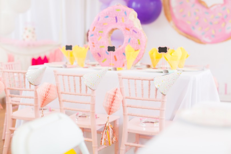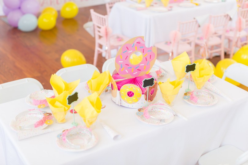 Donuts, Donuts, and more Donuts! Dekota had the sweetest first birthday party at the Town of Livingston! The theme for her birthday party was donuts. Everything from the donut themed decor to the pink decorated donuts made this first birthday party spectacular! During the party, the younger guest enjoyed decorating their own donuts with different colored icing and sprinkles. Everyone had a blast celebrating Dekota’s First Birthday! Check out some of the highlights from her birthday party below!