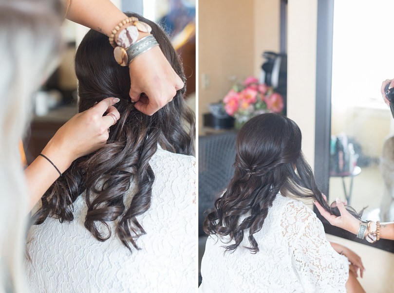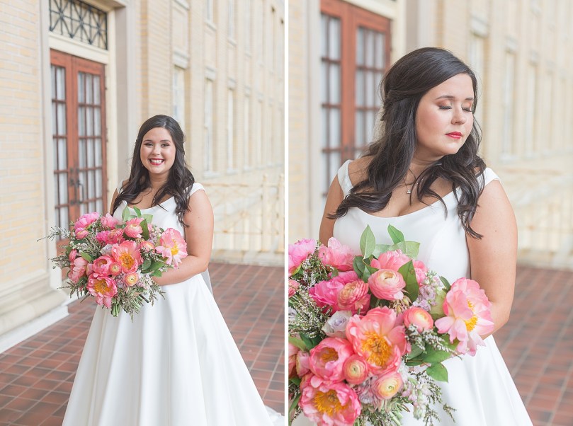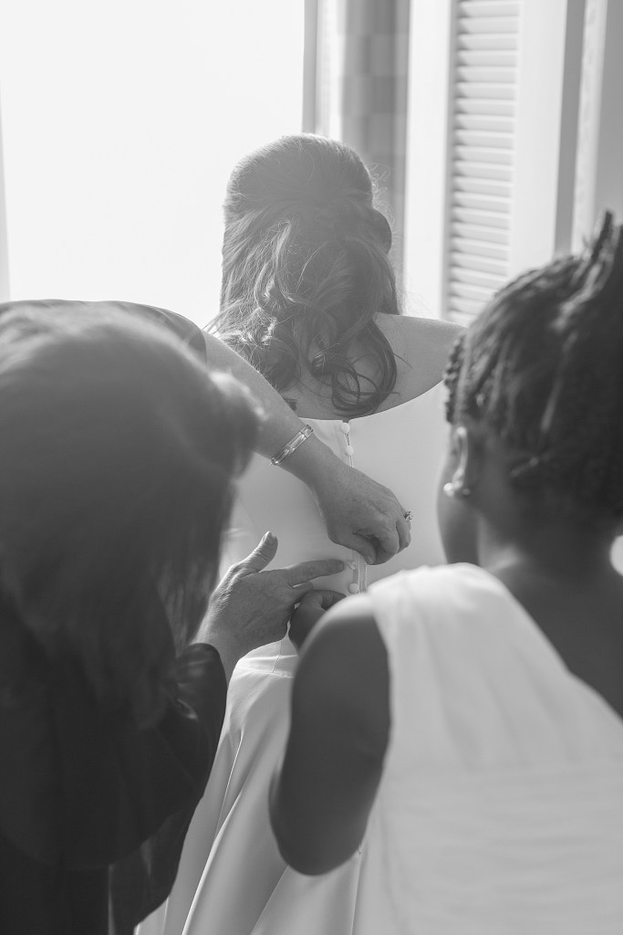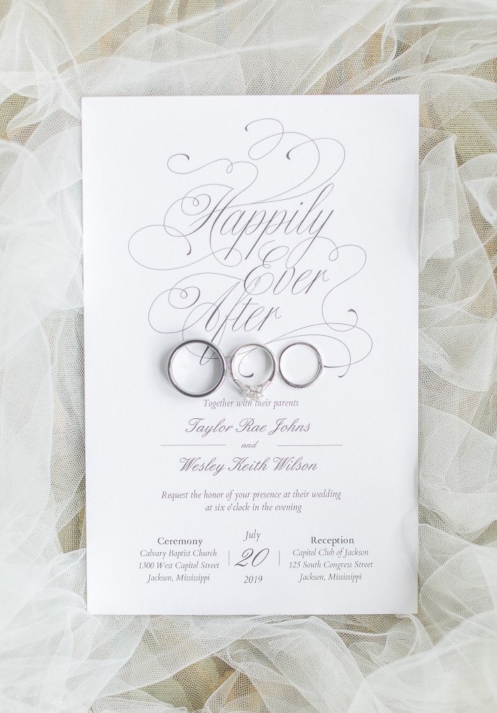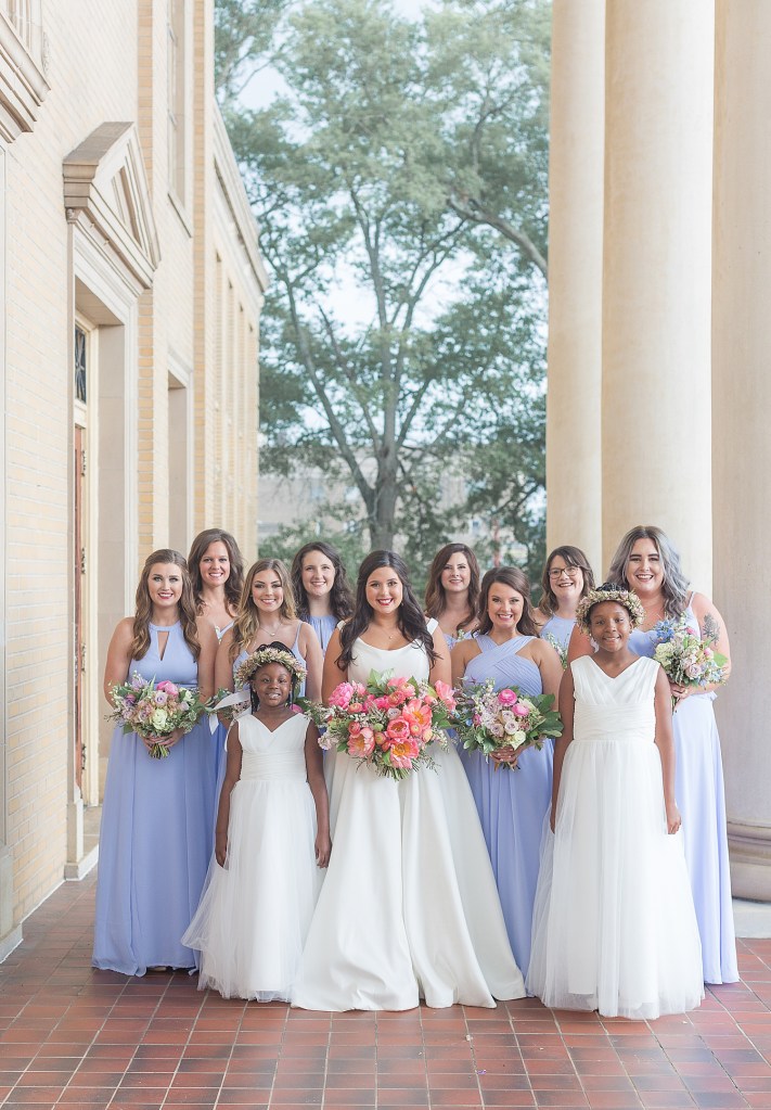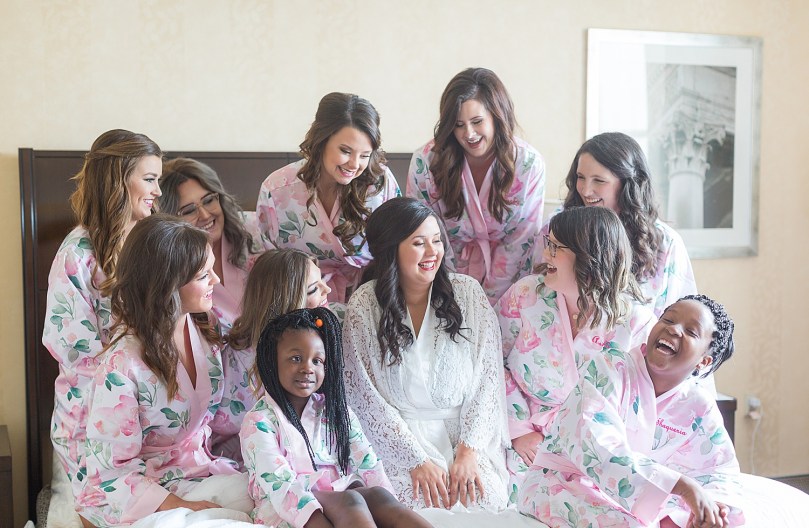 Congratulations to the new Mr. & Mrs. Wilson! Taylor & Wesley had a beautiful wedding in Jackson, Mississippi. The bride & groom started their day by getting ready in separate suites at The King Edward Hotel in Downtown Jackson. When I arrived, I noticed how calm and happy Taylor was for her big day! As the bride got her hair & makeup done, I spent time photographing her beautiful bridal details. When it was time for the bride to get dressed, her mother, sister, & flower girls all helped her to get ready. It was so sweet watching the flower girls help her mom to button her dress.