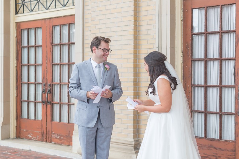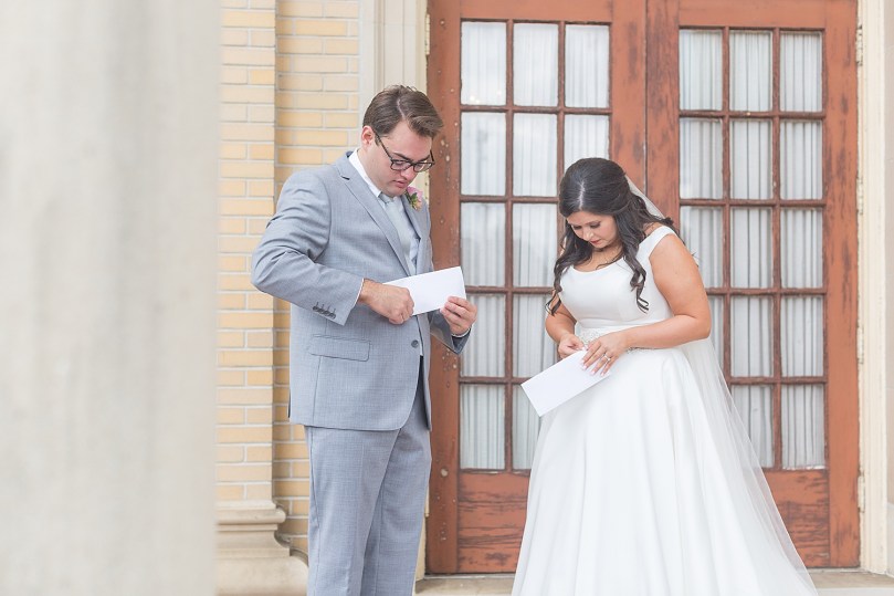 Once the bride was dressed, we headed to Calvary Baptist Church for the bride & groom’s first look. Taylor & Wesley were both so excited about having a first look! I loved capturing their excitement & emotions of seeing each other for the very first time. Immediately after the first look, Taylor & Wesley silently read handwritten letters that they had written for each other – that was one of the sweetest things that I loved about their first look!