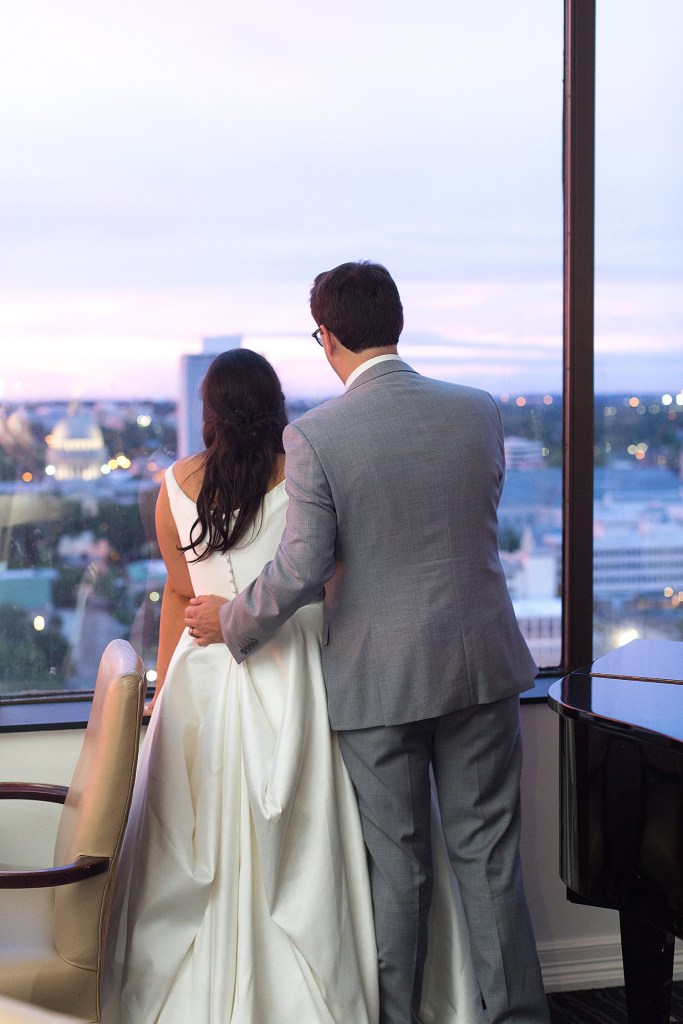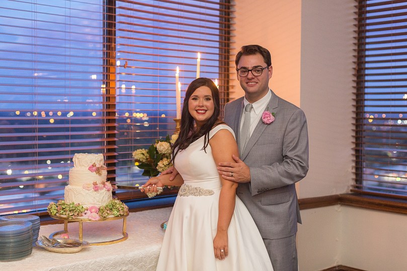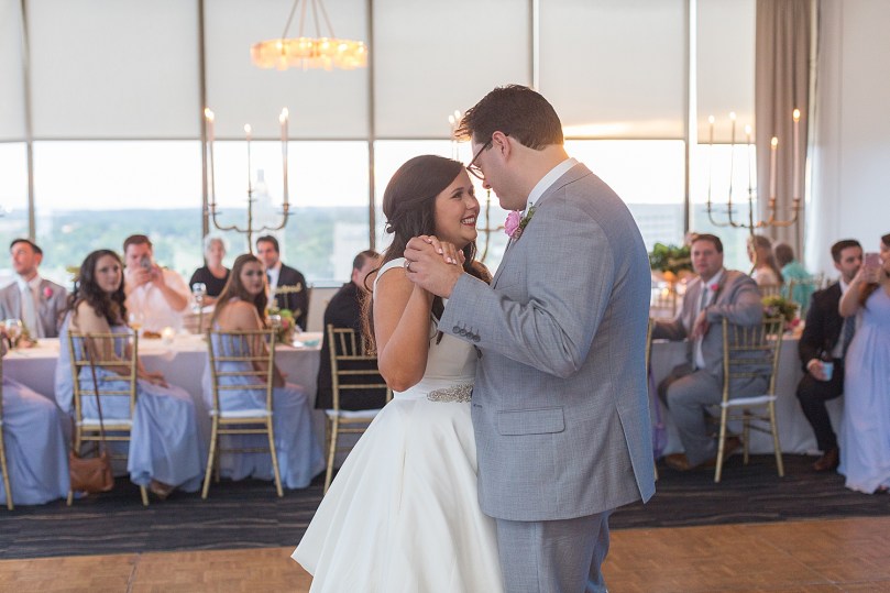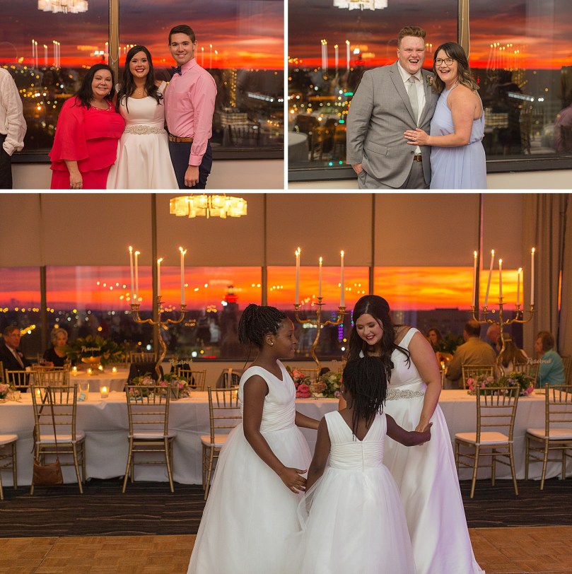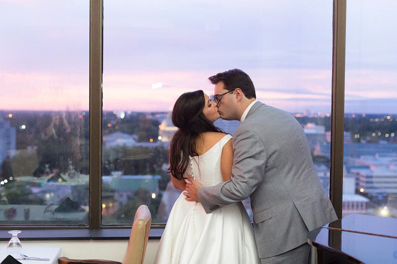 After the ceremony, all of the guest headed to The Capital Club for the reception. Before the reception began, all of the guest waited outside to welcome Taylor & Wesley with an amazing grand entrance! It was so nice to see how happy the guest were about the newlyweds! The reception was held on the top floor of The Captial Club which overlooked the entire downtown Jackson. It was so amazing to watch the beautiful colors in the sky change as the sun was setting. Check out some of my favorites from their amazing wedding day below!