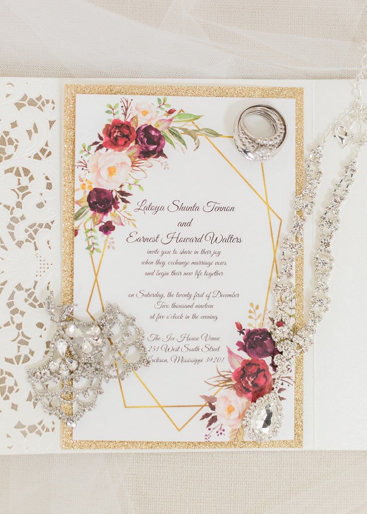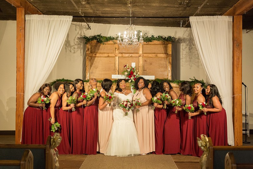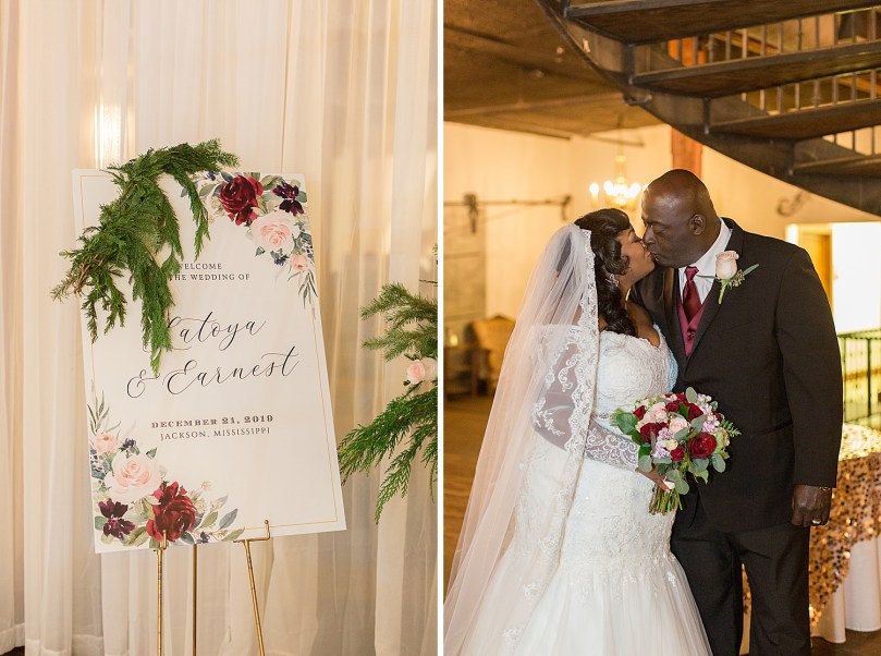 Saturday’s wedding was so beautiful! Latoya & Earnest had a beautiful, Christmas themed wedding at The Ice House Venue in downtown Jackson, Mississippi. I love how the Christmas decor was used throughout the venue. The beautiful decorated Christmas trees and holiday decor were absolutely perfect. I really liked the special ornament favors!