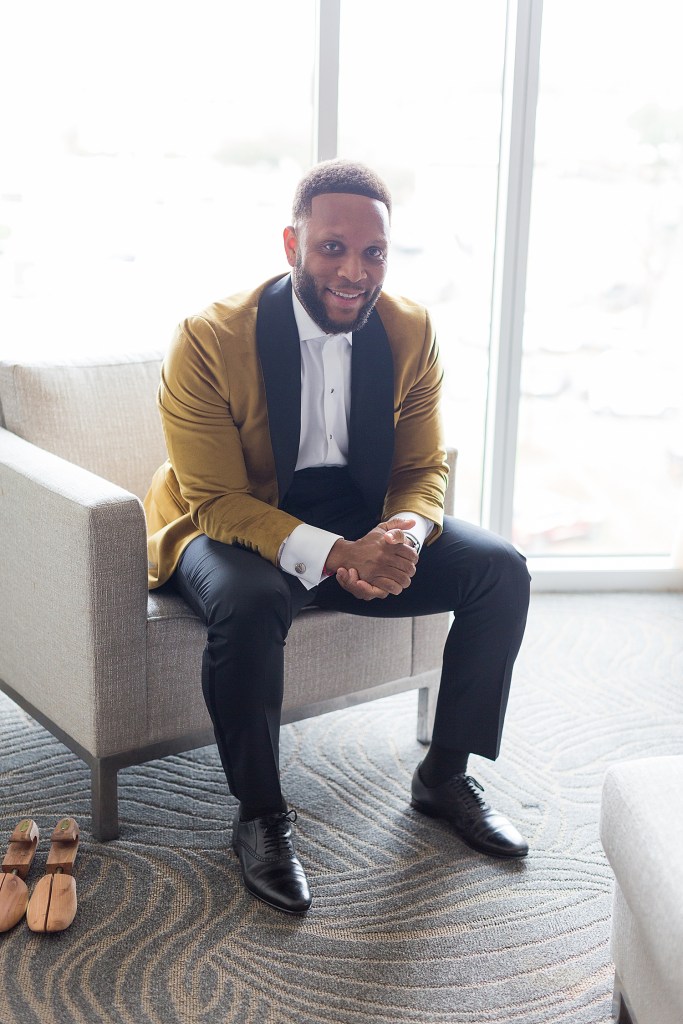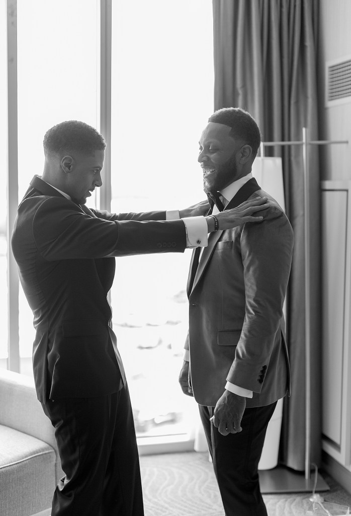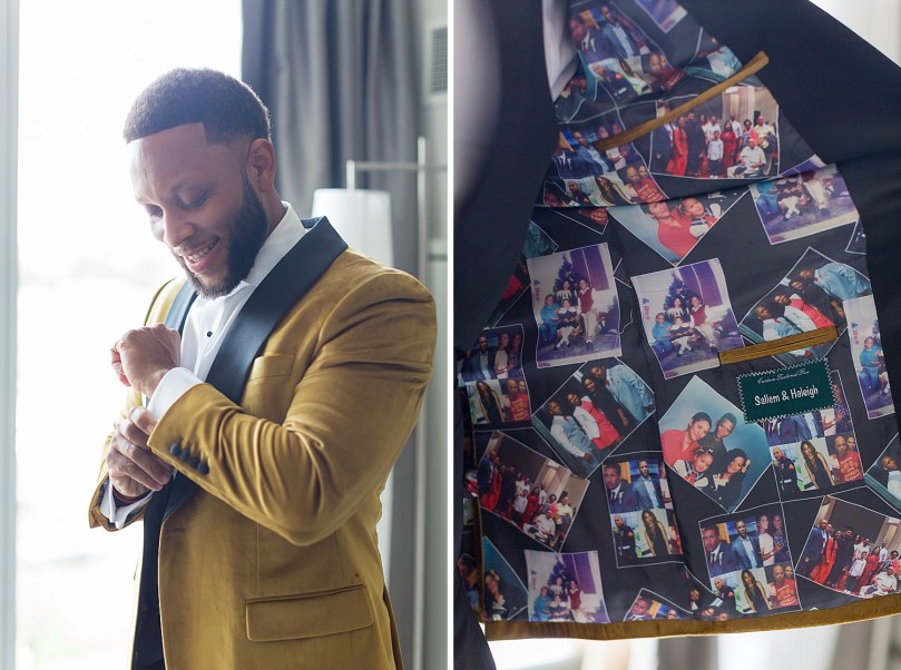 After photographing Haleigh & and her girls, I made my way to Saleem’s suite. As Saleem was getting ready, he had the sweetest gift from Haleigh to wear! Inside of his jacket was a collage of photos that Haleigh picked out. This was such a sweet & sentimental gift. As you can see below, Saleem was definielty excited about his custom designed jacket!