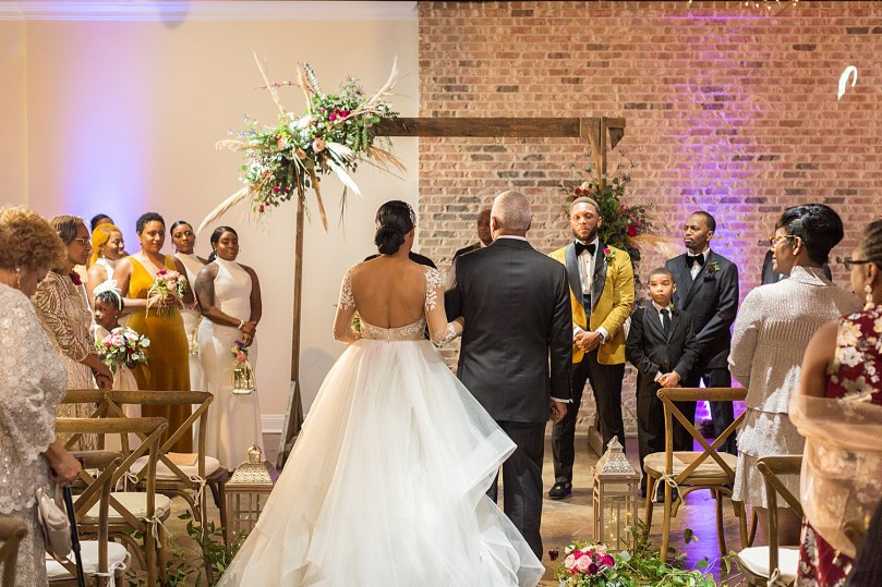 After leaving The Westin, we all made our way to the venue for the ceremony. I loved how TLS Wedding & Events decorated the ceremony & reception in a beautiful bohemian theme! The colors for the wedding were absolutely gorgeous. Everything from the invitations to the programs by EMBB Designs matched the bohemian theme. I also loved how the bridesmaids carried unique lanterns instead of bouquets during the ceremony! All of the girls also wore cute custom jackets specifically made for the wedding!