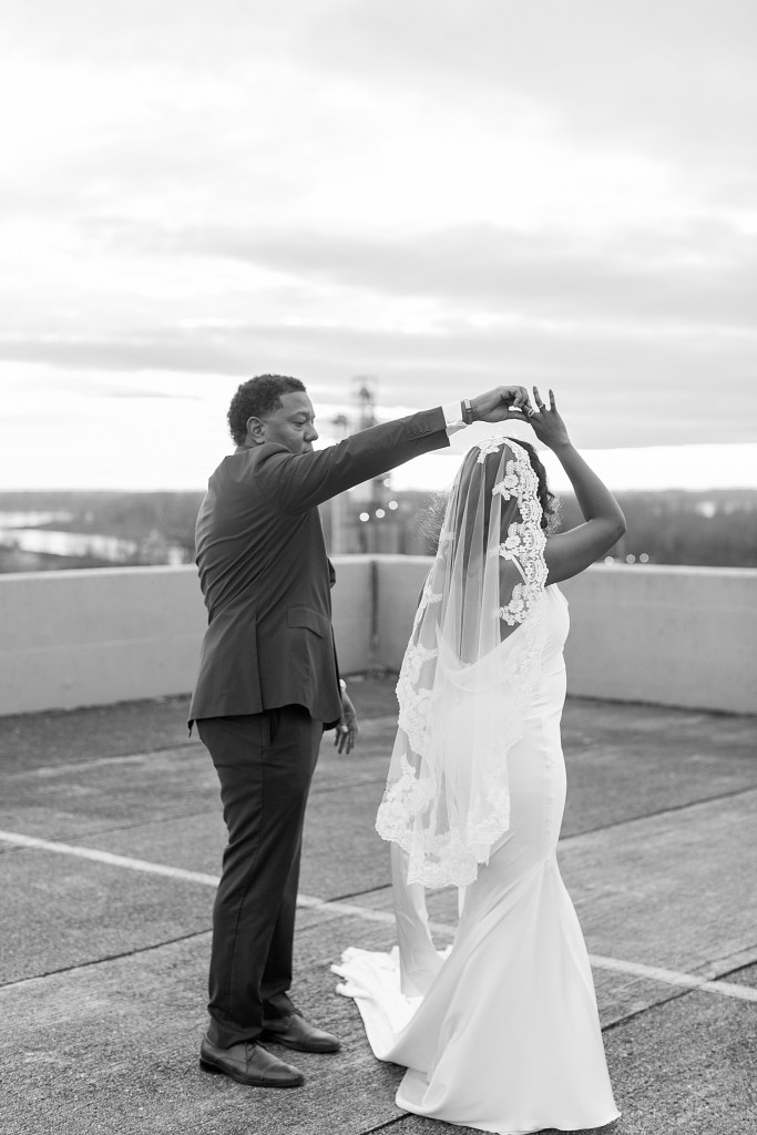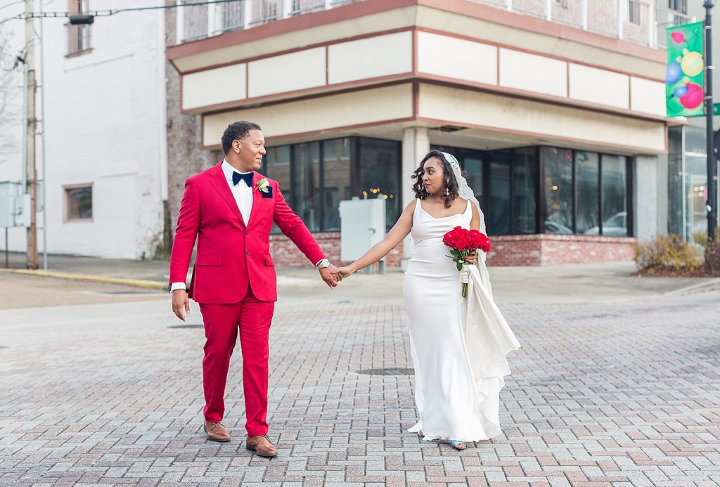 Happy New Year and congratulations to Mr. & Mrs. Henderson! Jasmine & Joseph had a beautiful New Year’s wedding at The Watermark Vicksburg in downtown Vicksburg, Mississippi! I loved the unique details and special touches that were included in their wedding. Because of COVID, Jasmine & Joseph opted to have a small & intimate ceremony with only their closest family & friends. I loved how they provided a yummy packaged dinner for each guest to enjoy on their own. Check out the photos below to see some of my favorite highlights from their big day! PS – The sunset photos are some of my favorites!!